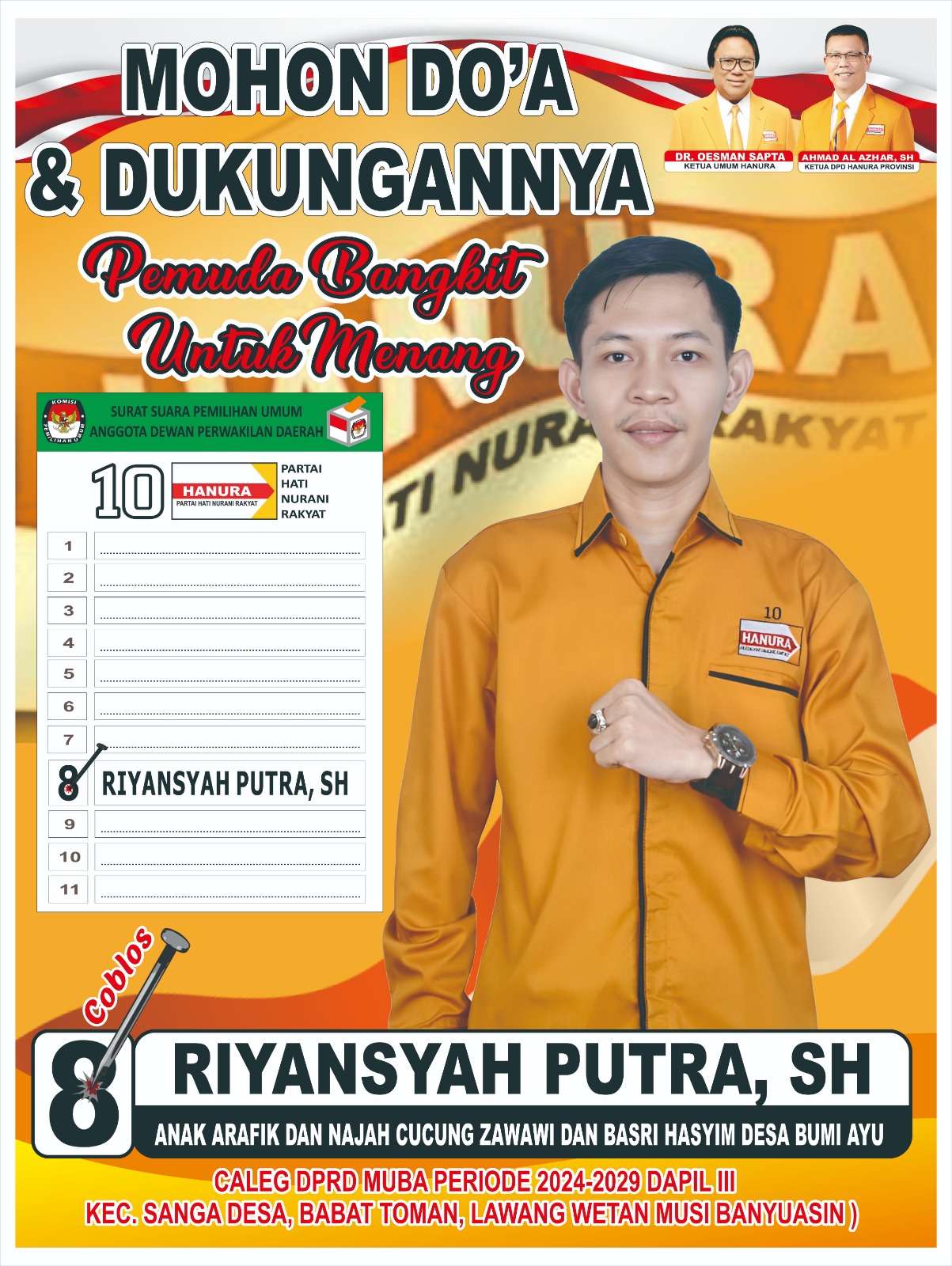 Menurut salah satu Calon Legislatif (Caleg) dari Partai Hati Nurani Rakyat (Hanura) Riyansyah Putra SH, masa Kampanye ini tentunya dapat menjadi momentum untuk semakin menarik hati Masyarakat.