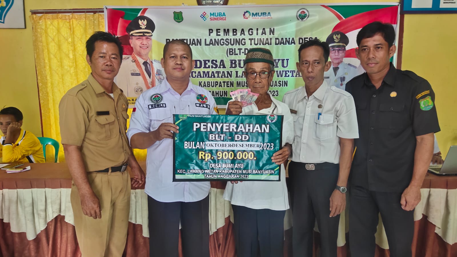 Sebanyak 23 KPM warga desa Bumi Ayu, kecamatan Lawang Wetan menerima Bantuan Langsung Tunai (BLT) sebesar Rp. 900.000,- (Sembilan Ratus Ribu Rupiah) yang disaksikan langsung oleh Pihak Struktur Desa, Babinsa Koramil 401-02/Babat Toman, Bhabinkamtibmas, BPD, KPM, dan KPMD.