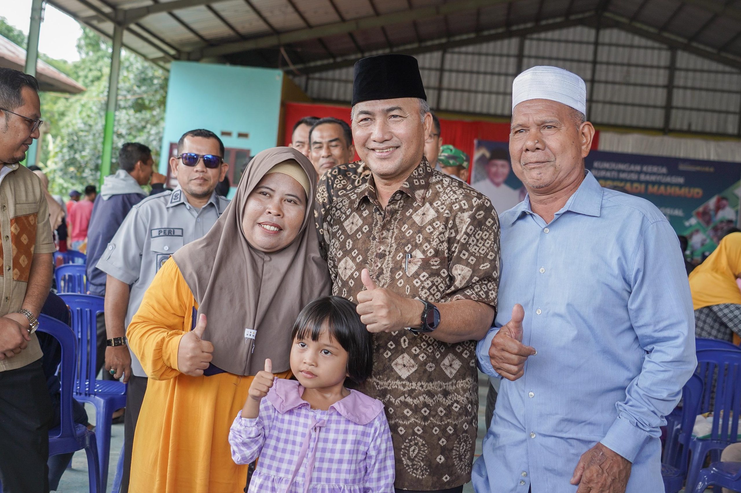 Ratusan warga pra sejahtera tampak sangat bahagia menyambut kedatangan Apriyadi yang merupakan putra daerah asli Muba dari Desa Bumi Ayu Kecamatan Lawang Wetan itu.