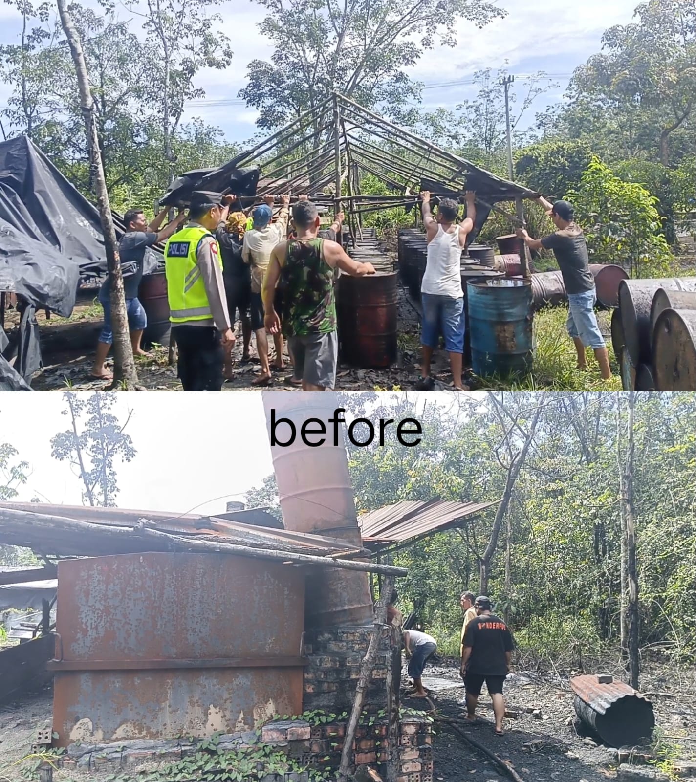 Kapolres Muba AKBP Iman Safii SIK MSi melalui Kapolsek Babat toman AKP Rama Yuda SH mengatakan, Hari ini telah dilakukan pembongkaran secara mandiri Tempat Ilegal Refinery di wilayah Desa Ulak Paceh.