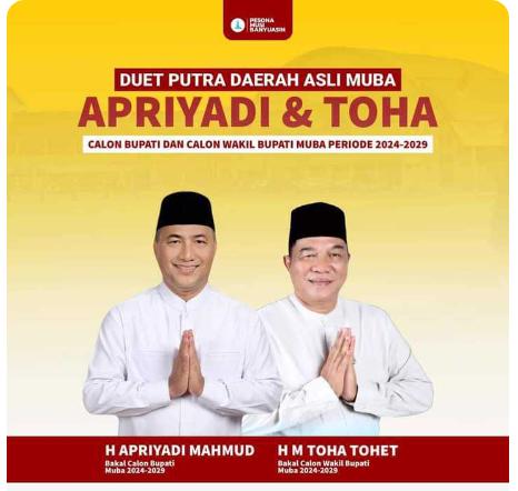 SEKAYU,lensarakyat.net – Maraknya di media sosial foto pasangan bakal calon bupati dan wakil bupati Muba H Apriyadi Mahmud-HM Toha Tohet yang beredar menarik perhatian masyarakat kabupaten Musibanyasin.