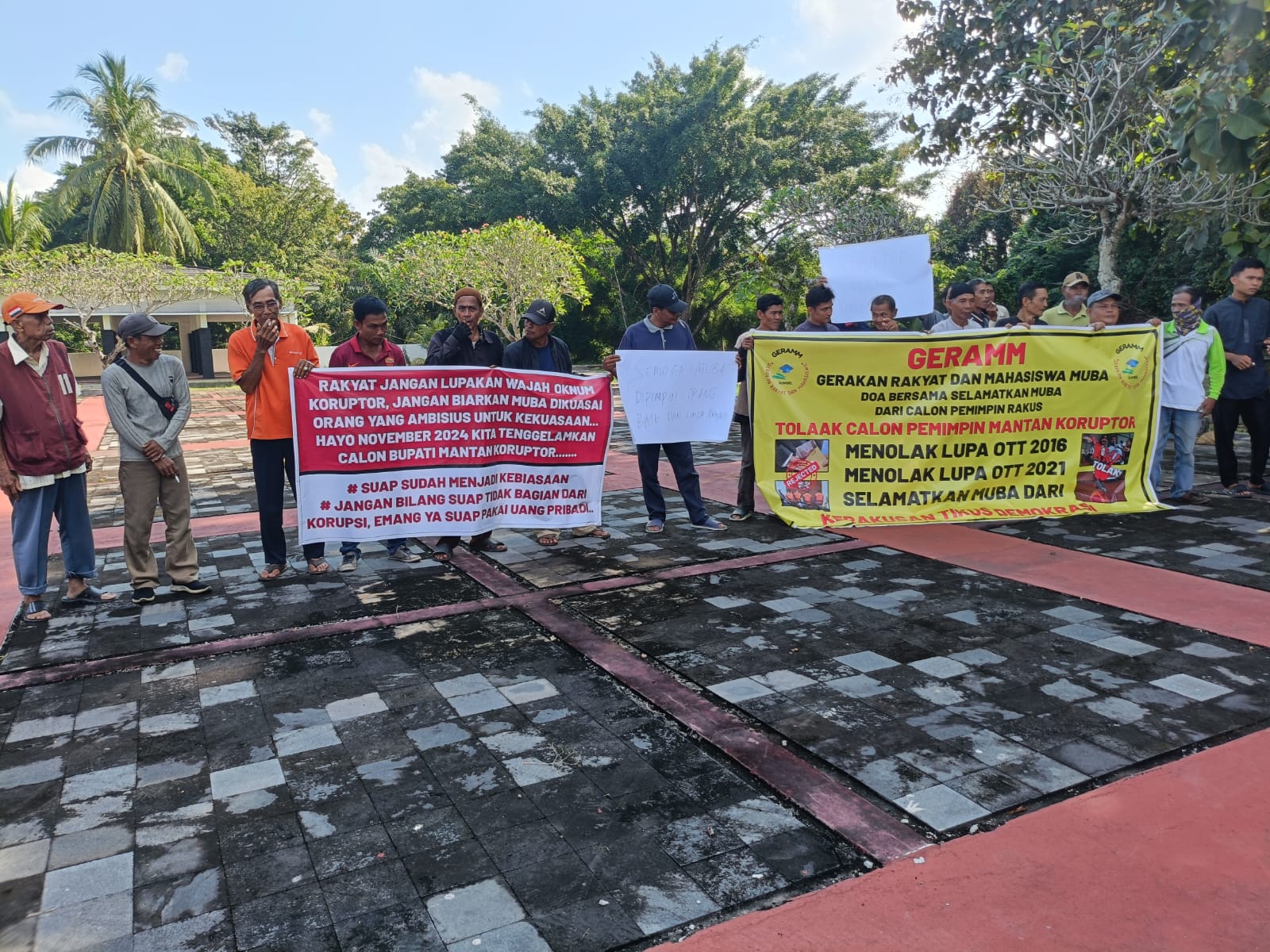 Gerakan Rakyat dan Mahasiswa Musi Banyuasin menegaskan penolakan terhadap mantan koruptor untuk menjadi pemimpin Muba, menolak orang yang ambisius terhadap kekuasaan dan menutup pintu untuk para mantan narapidana korupsi mencalonkan diri sebagai Calon Bupati Muba.