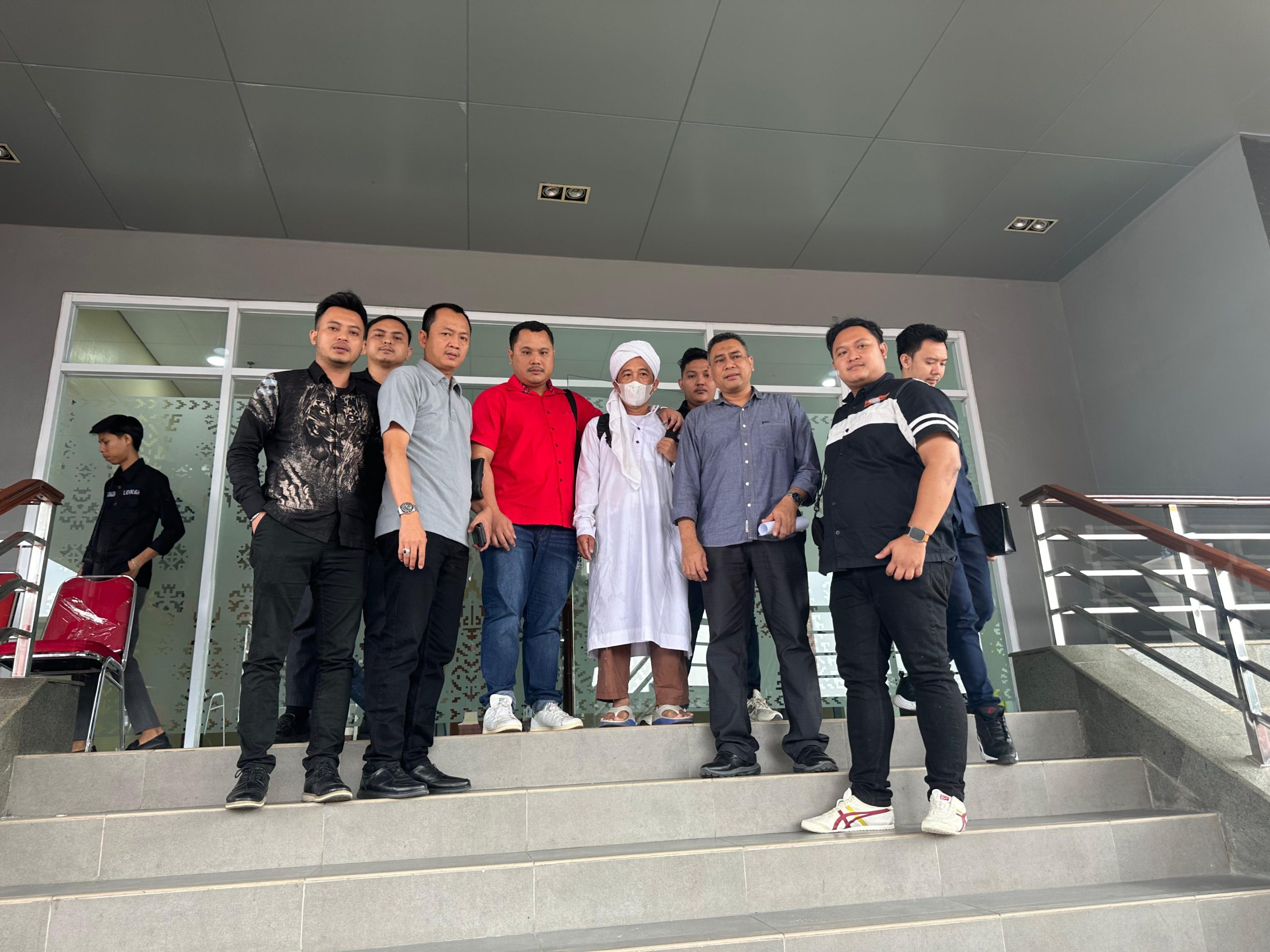 Pantauan di Kejati Sumsel tampak tersangka Ridwan memakai baju koko berwarna putih dan memakai sorban.