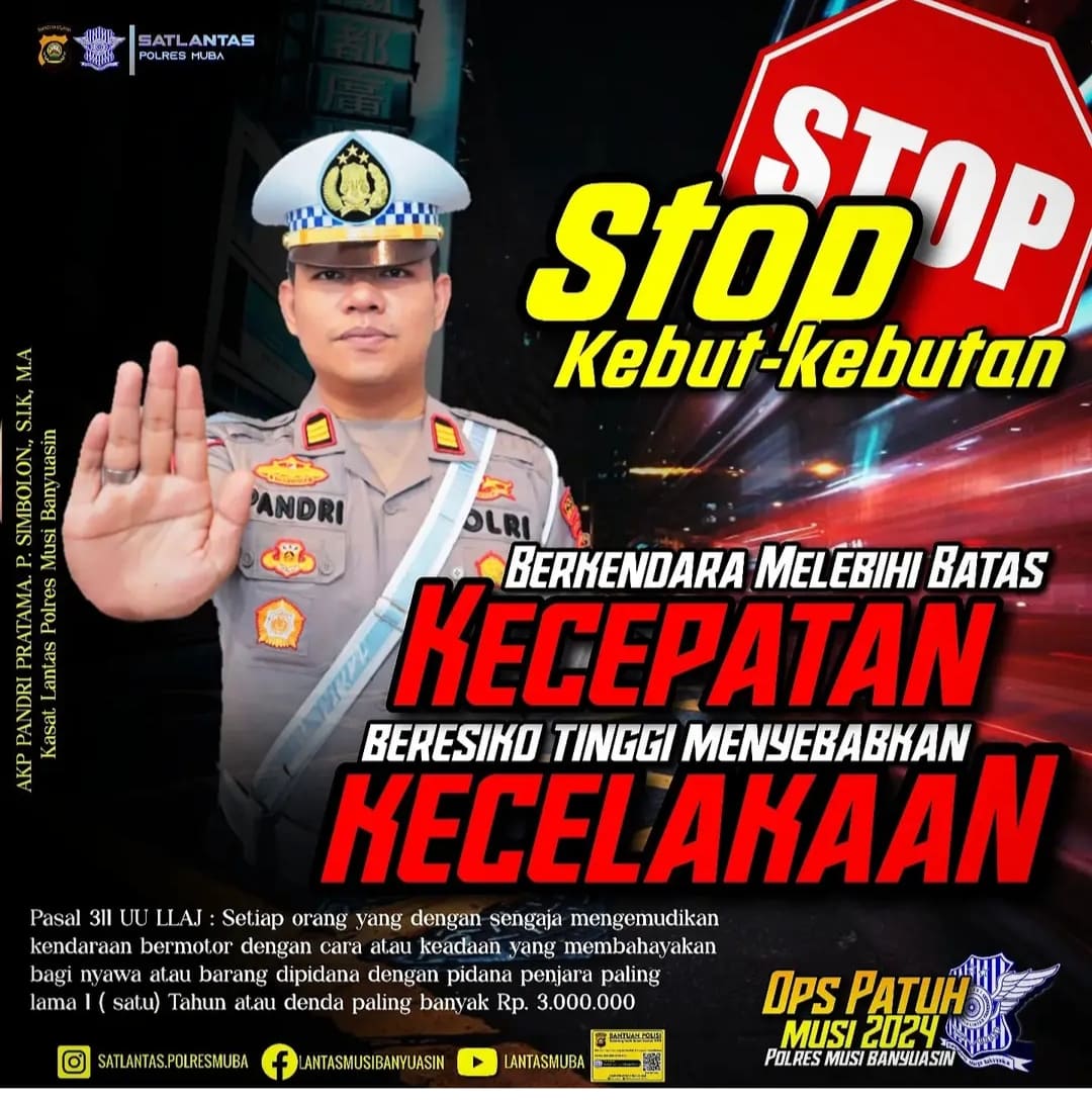 Kasatlantas Polres Musi Banyuasin AKBP Pandri Pratama Putra Simbolon SIK MA menghimbau masyarakat untuk berkendara sesuai dengan batas dan aturan yang telah ditetapkan.