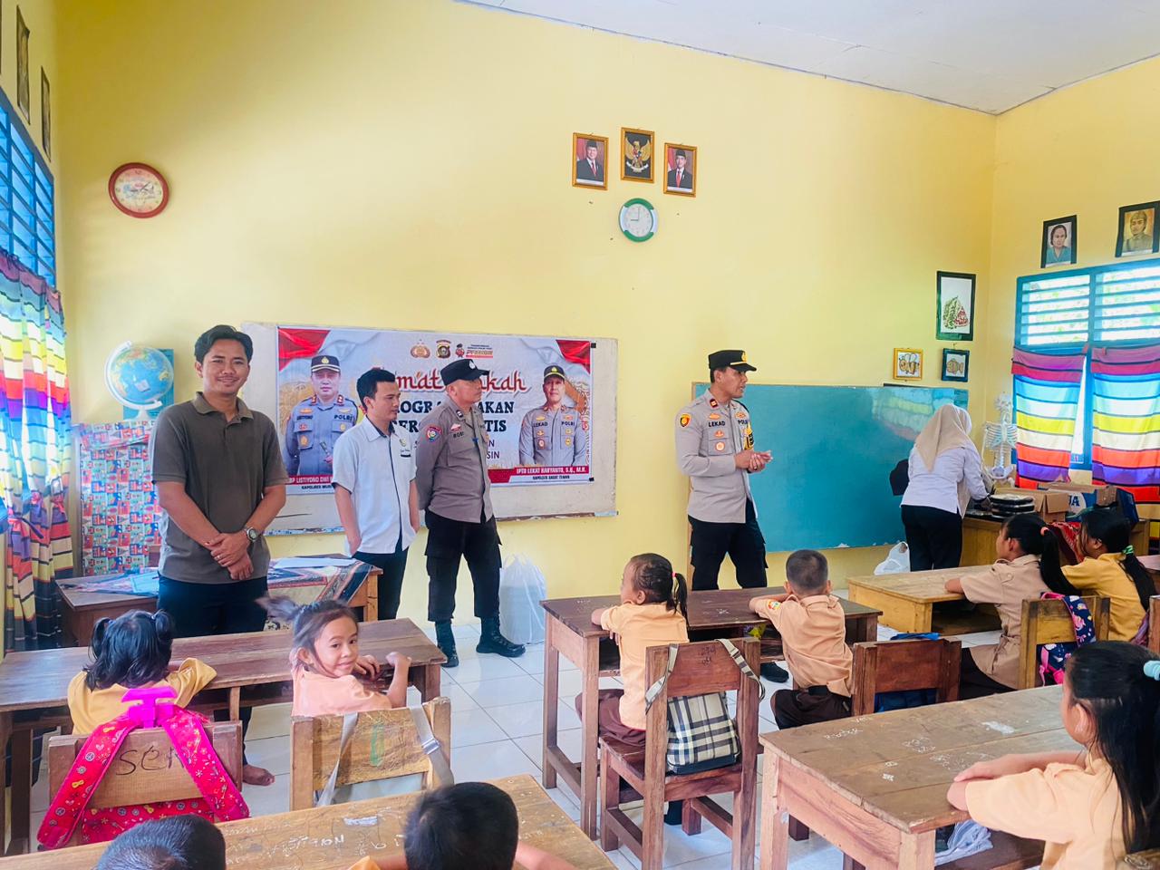 MUBA,lensarakyat.net- Jumat Berkah,Polsek Babat Toman Kembali lanjutkan Program Asta Cita Presiden Republik Indonesia dengan membagikan makan siang bergizi gratis di Sekolah Dasar Pelita Maju Sungai Putih Desa Toman Baru, Kecamatan Babat Toman pada Jumat (15/11/2024).