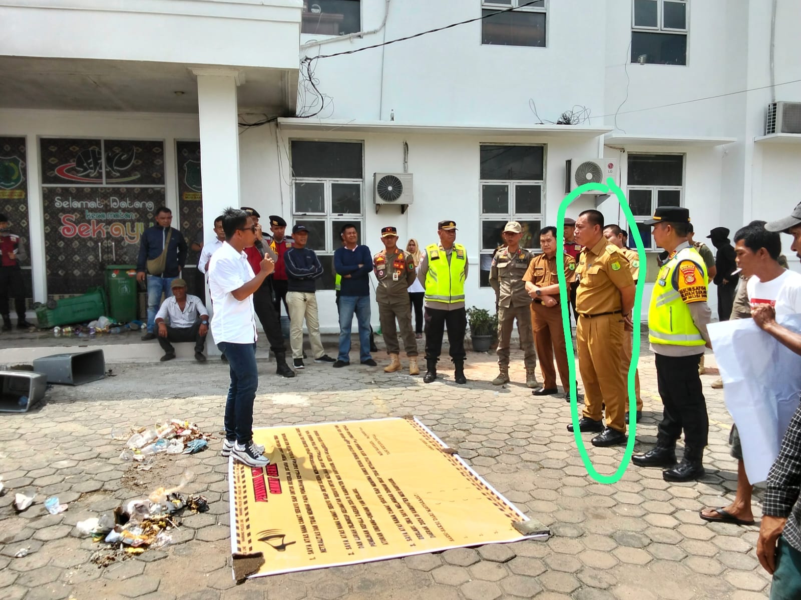 Selain itu Midun bersama massa aksi merasa kecewa karena dalam aksi tersebut Camat Sekayu Edi Heryanto SH MSi yang tidak menyambut baik kehadiran massa di Kantor Camat Sekayu.