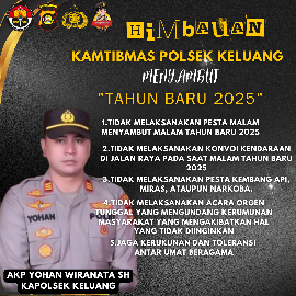 Dalam himbauannya, Kapolsek Keluang AKP Yohan Wiranata SH mengingatkan masyarakat untuk tidak melaksanakan pesta menyambut tahun baru 2025 serta bentuk perayaan apapun mencegah hal yang tidak diinginkan terjadi.