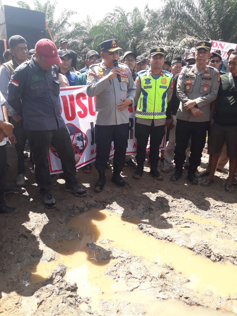 Aksi damai yang dilakukan tersebut terkait kerusakan jalan A1- A4 Kecamatan Keluang akibat dilintasi mobil tangki dengan tonase mencapai puluhan ton.aksi damai ini berada dibawah kordinir beberapa kepala desa dan koperasi di Kecamatan Keluang.