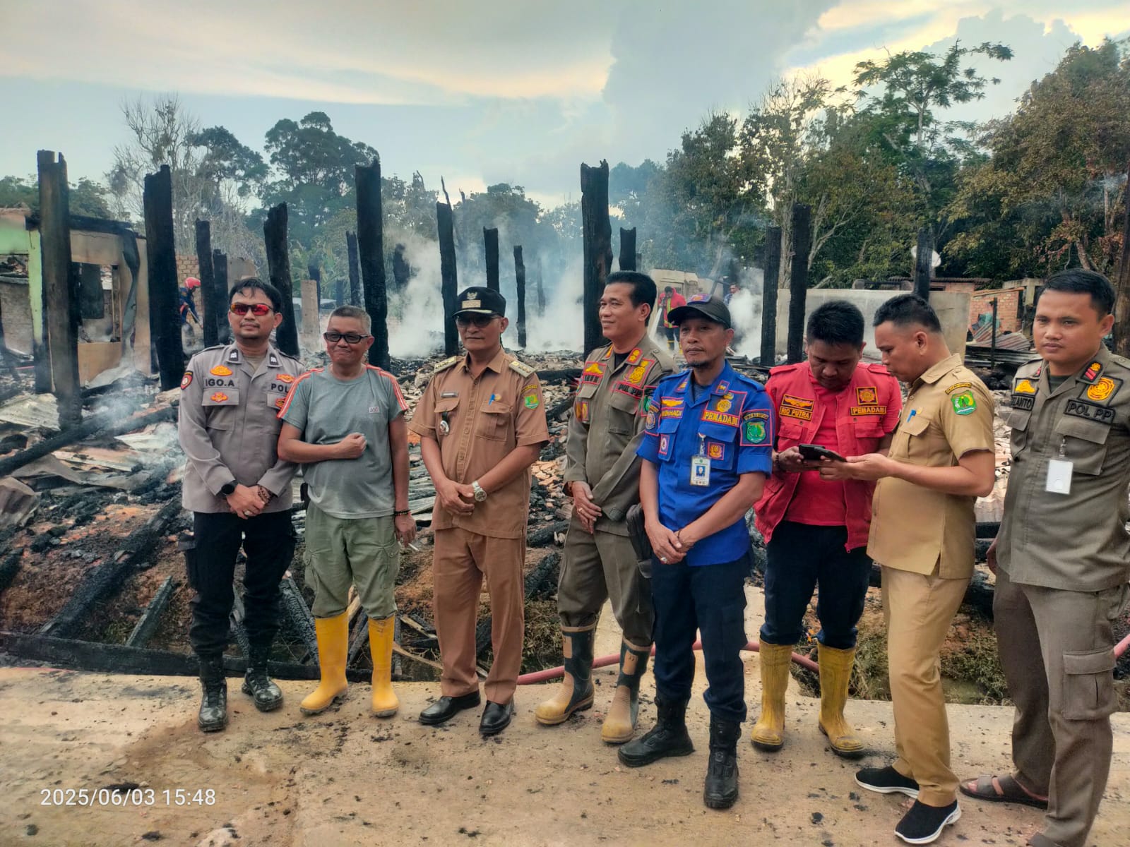 Kepala Desa Dawas, Amsar H., melaporkan insiden tersebut kepada petugas Damkar. Tim segera bergegas ke lokasi dan melakukan pemadaman bersama warga