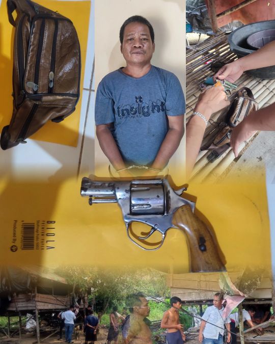 Selanjutnya, tim melakukan penggeledahan yang disaksikan oleh warga setempat. Dalam penggeledahan tersebut, di dalam tas selempang warna coklat milik tersangka ditemukan satu pucuk senjata api rakitan laras pendek jenis revolver beserta dua butir amunisi.