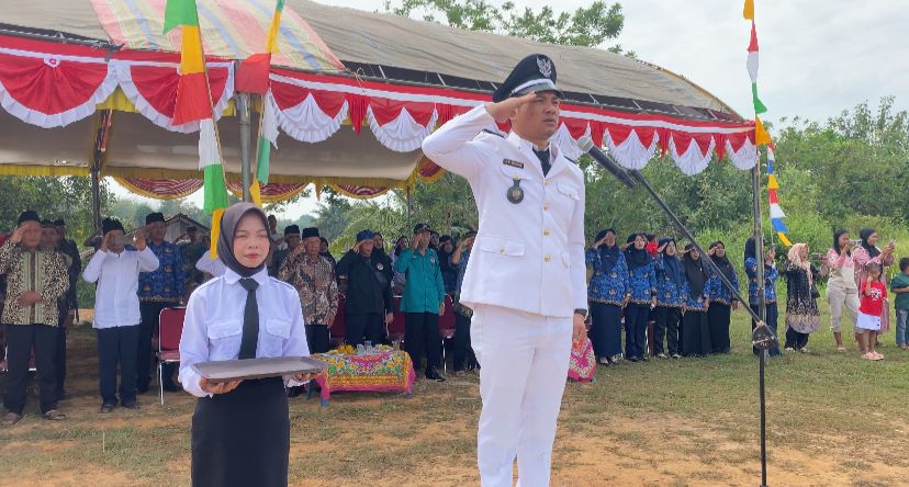 Kepala Desa Bukit Selabu sebagai inspektur upacara didampingi perangkat desa, tokoh masyarakat dan para guru turut hadir dalam upacara tersebut.