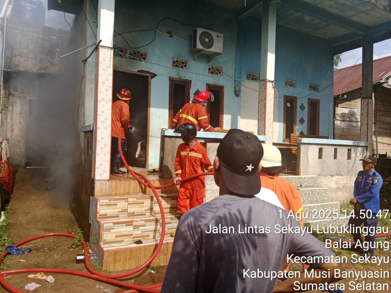 SEKAYU,Lensarakyat.net – Tim Pemadam Kebakaran (Damkar) Kabupaten Musi Banyuasin kembali menunjukkan respons sigap dan kerja profesional. Api yang melahap sebuah rumah di Jalan Sekayu–Sukarami, RT 016 RW 005 Kelurahan Balai Agung, Kecamatan Sekayu, berhasil dipadamkan tanpa menimbulkan korban jiwa, Jumat (1/8/2025).