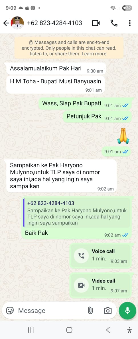 SEKAYU, Lensarakyat.net — Pemerintah Kabupaten Musi Banyuasin (Muba) mengingatkan masyarakat untuk waspada terhadap maraknya aksi penipuan yang mengatasnamakan Bupati H M Toha Tohet SH maupun Wakil Bupati Kyai Rohman. Modus yang digunakan pelaku adalah dengan mengirimkan pesan melalui aplikasi WhatsApp seolah-olah berasal dari kedua pimpinan daerah tersebut.