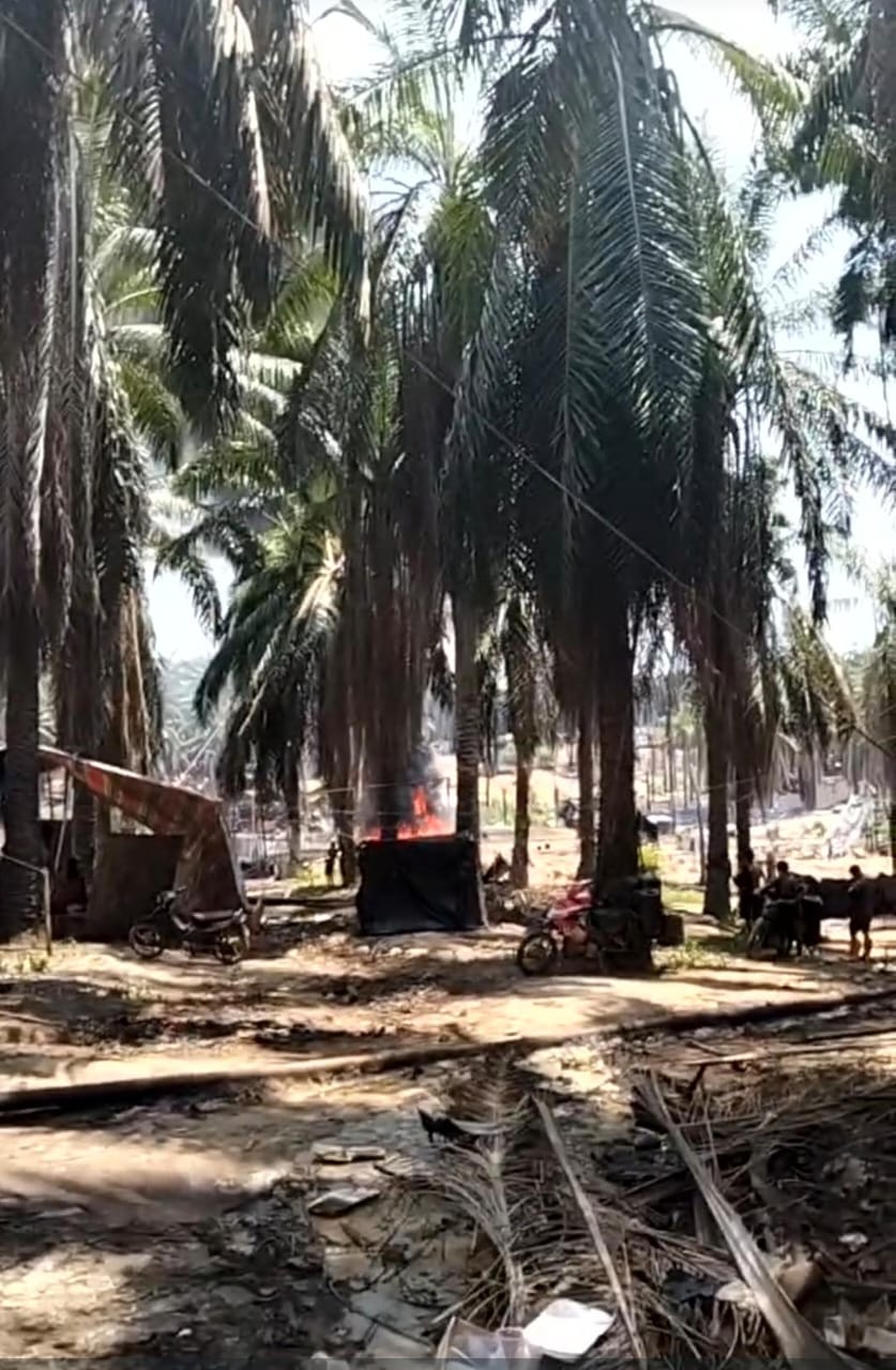 Berdasarkan informasi narasumber melalui rekaman video terlihat kepulan asap hitam membumbung tinggi disertai korban api yang melahap sumur minyak Ilegal.