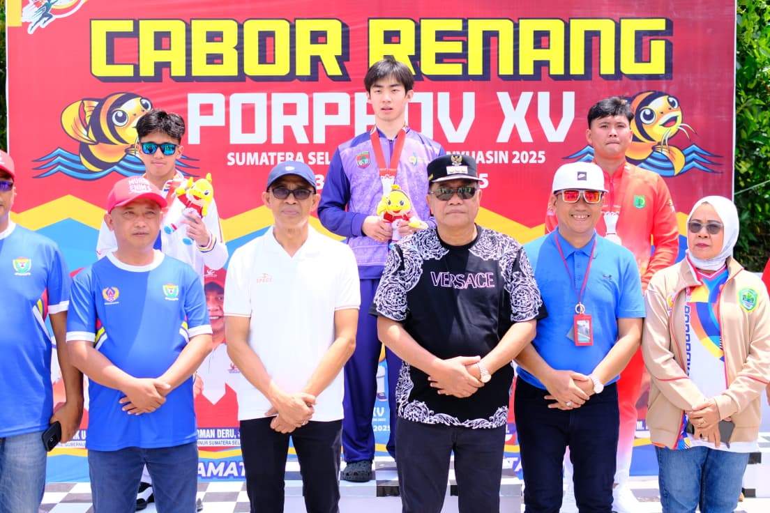 Bupati Toha secara langsung memberikan penghargaan kepada para pemenang kompetisi cabang olahraga (cabor) renang. Dalam penyerahan tersebut, Andre Abelson dari Kabupaten Musi Rawas berhasil meraih posisi sebagai Juara Satu. Diikuti oleh Fadel Arif Dinanda dari Kabupaten Muara Enim yang menempati posisi Juara Dua, sementara M. Wahyu Putra Handepta dari Kabupaten Musi Banyuasin sendiri meraih posisi Juara Tiga. Prosesi penyerahan medali, yang disaksikan langsung oleh jajaran Forkopimda dan pendukung, berlangsung khidmat, menegaskan pentingnya apresiasi terhadap prestasi olahraga daerah.