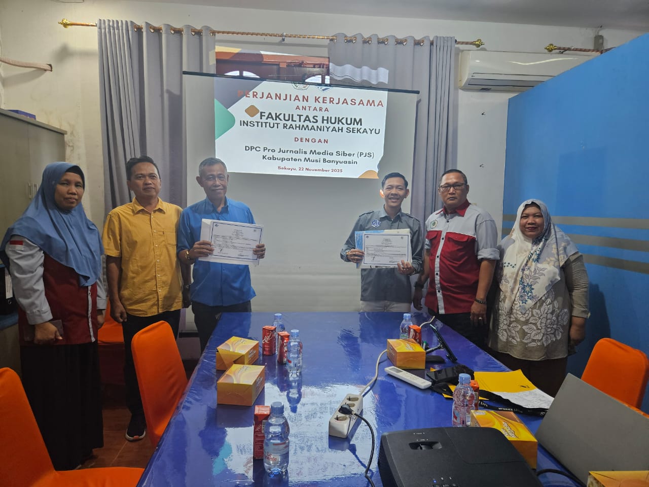 MoU tersebut ditandatangani oleh Rektor Dr Wandi Subroto SH MH, Dekan Fakultas Hukum IRS Dr H Syaparuddin SH MH bersama Ketua Pro Jurnalismedia Siber (PJS) Riyansyah Putra SH CMSP, dihadiri sejumlah Jajaran Institut Rahmaniyah Sekayu.