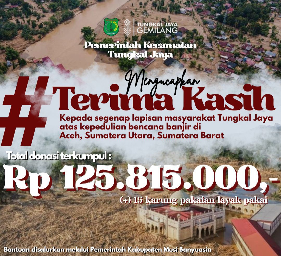 MUBA,Lensarakyat.net – Peduli Bencana Sumatera, Pemerintah Kecamatan Tungkal Jaya Kabupaten Musi Banyuasin Galang Dana Donasi bagi Korban Bencana di 3 Provinsi di Indonesia yakni Sumatera Utara, Aceh dan Sumatera Barat.