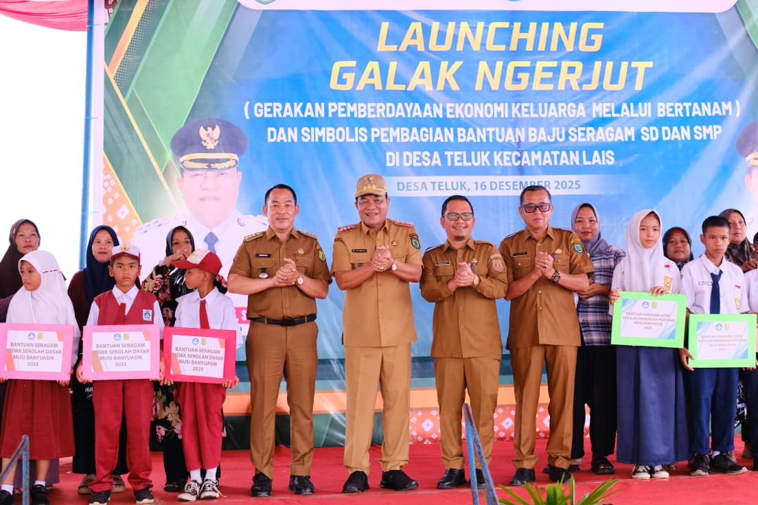Dalam kesempatan tersebut, Bupati Muba secara resmi melaunching Gerakan Pemberdayaan Ekonomi Keluarga Melalui Bertanam (Galak Ngerjut) sekaligus melakukan pembagian simbolis bantuan seragam sekolah gratis bagi siswa SD dan SMP di Kecamatan Lais.