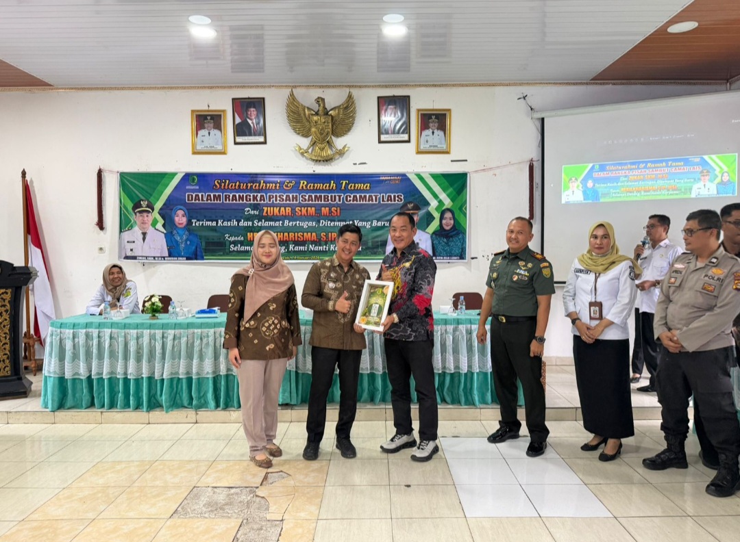 Pisah sambut tersebut merupakan proses peralihan kepemimpinan yang sebelumnya Camat Lais dijabat oleh Zukar SKM MSi dan kini beralih dipimpin oleh Heru Karisma SIP MSi.