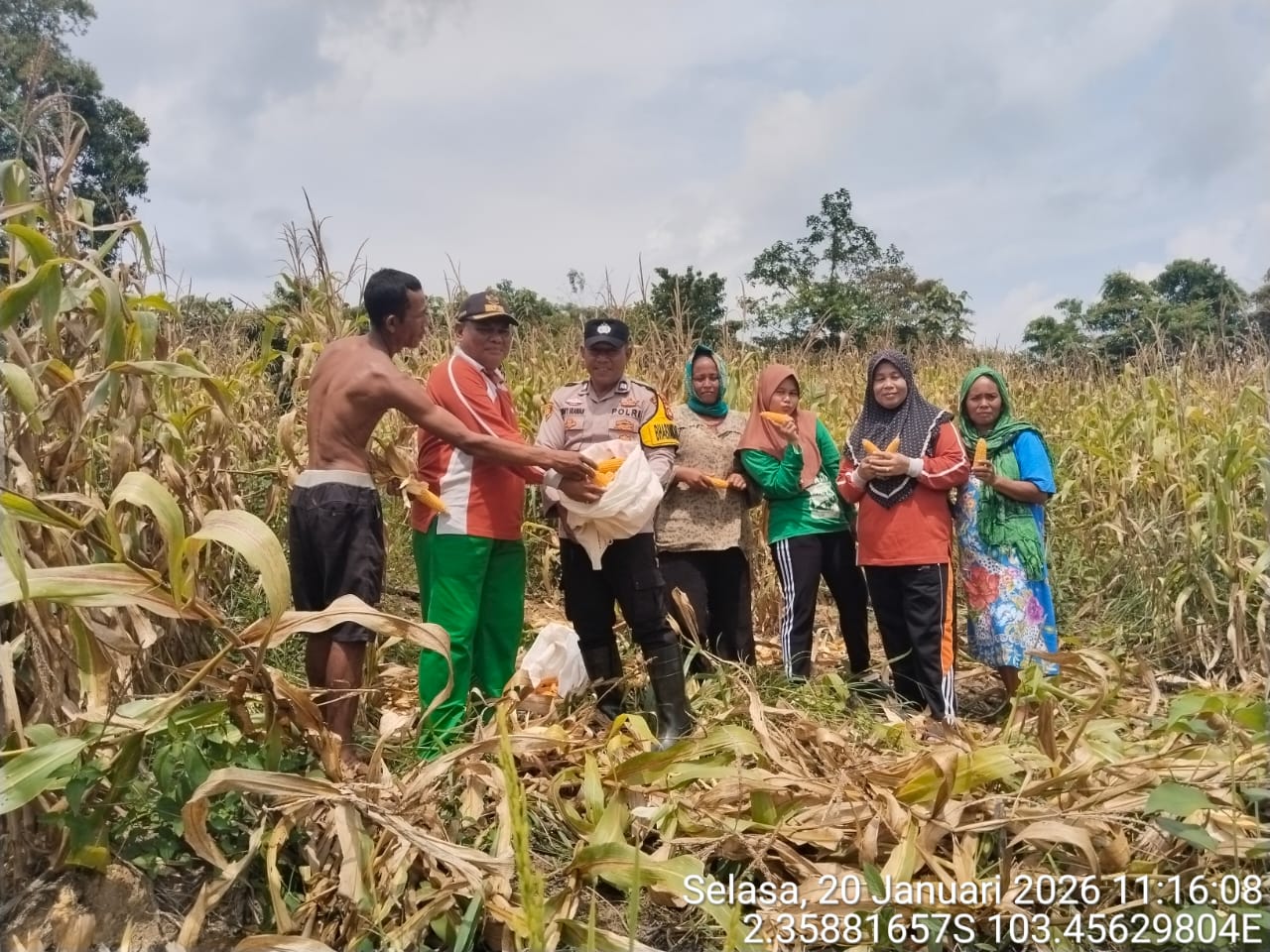 MUBA,Lensarakyat.net – Upaya memperkuat Ketahanan Pangan Nasional dan Swasembada Pangan, Pemerintah Desa Sako Suban bersama Polsek Batanghari Leko Gelar Panen Jagung bersama, Pada Selasa (20/01/2026).