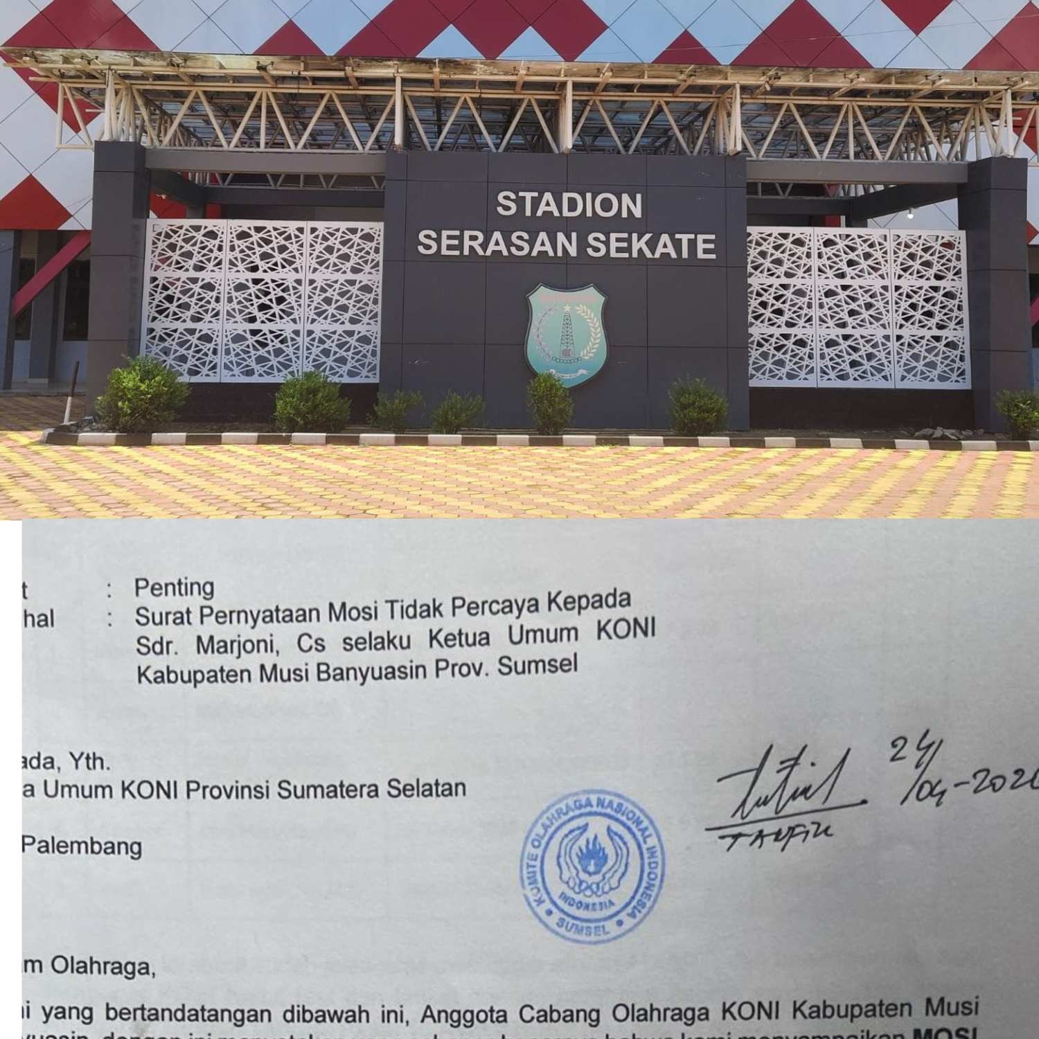 Musi Banyuasin,Lensarakyat.net- Pengurus KONI Provinsi Sumsel diminta menunda pelaksanaan Raker dan Musorkab KONI Kabupaten Musi Banyuasin. Hal ini disampaikan melalui surat pernyataan Mosi tidak percaya yang ditandatangani sejumlah pengurus Cabor dan disampaikan ke KONI Sumsel, Jumat (24/4/2026).
