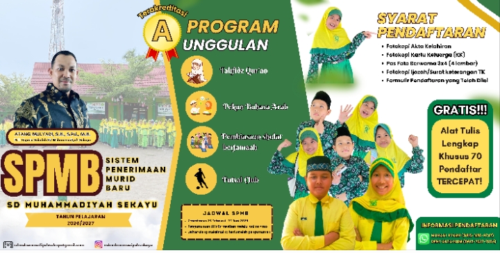 MUBA,Lensarakyat.net – SD Muhammadiyah Sekayu resmi membuka Seleksi Penerimaan Murid Baru (SPMP) untuk tahun pelajaran 2026/2027. Proses pendaftaran ini dilakukan secara terbuka dan tanpa dipungut biaya pendaftaran (gratis).